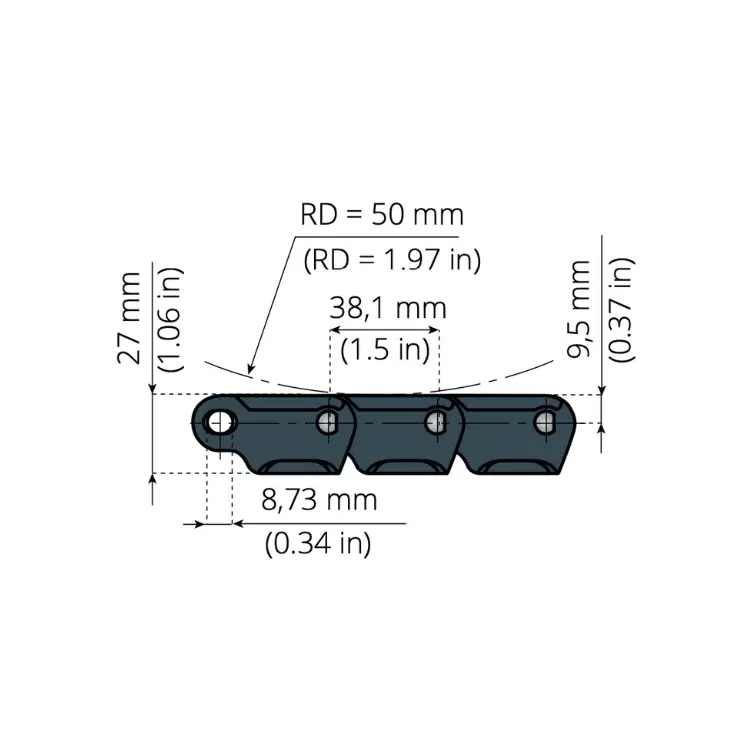 TAB Corner Tracks, Curves, Bends, and Straight Sections are designed as an economical alternative to magnetic curves, specifically for conveyor systems where cleaning and product support are not primary requirements. These components are ideal for a wide range of industries, offering a stable and efficient means of product transport. The TAB design ensures a secure chain hold, maintaining product stability through the curves and bends of conveyor lines.