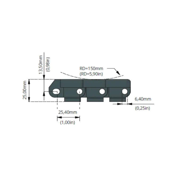 TAB Corner Tracks, Curves, Bends, and Straight Sections are designed as an economical alternative to magnetic curves, specifically for conveyor systems where cleaning and product support are not primary requirements. These components are ideal for a wide range of industries, offering a stable and efficient means of product transport. The TAB design ensures a secure chain hold, maintaining product stability through the curves and bends of conveyor lines.