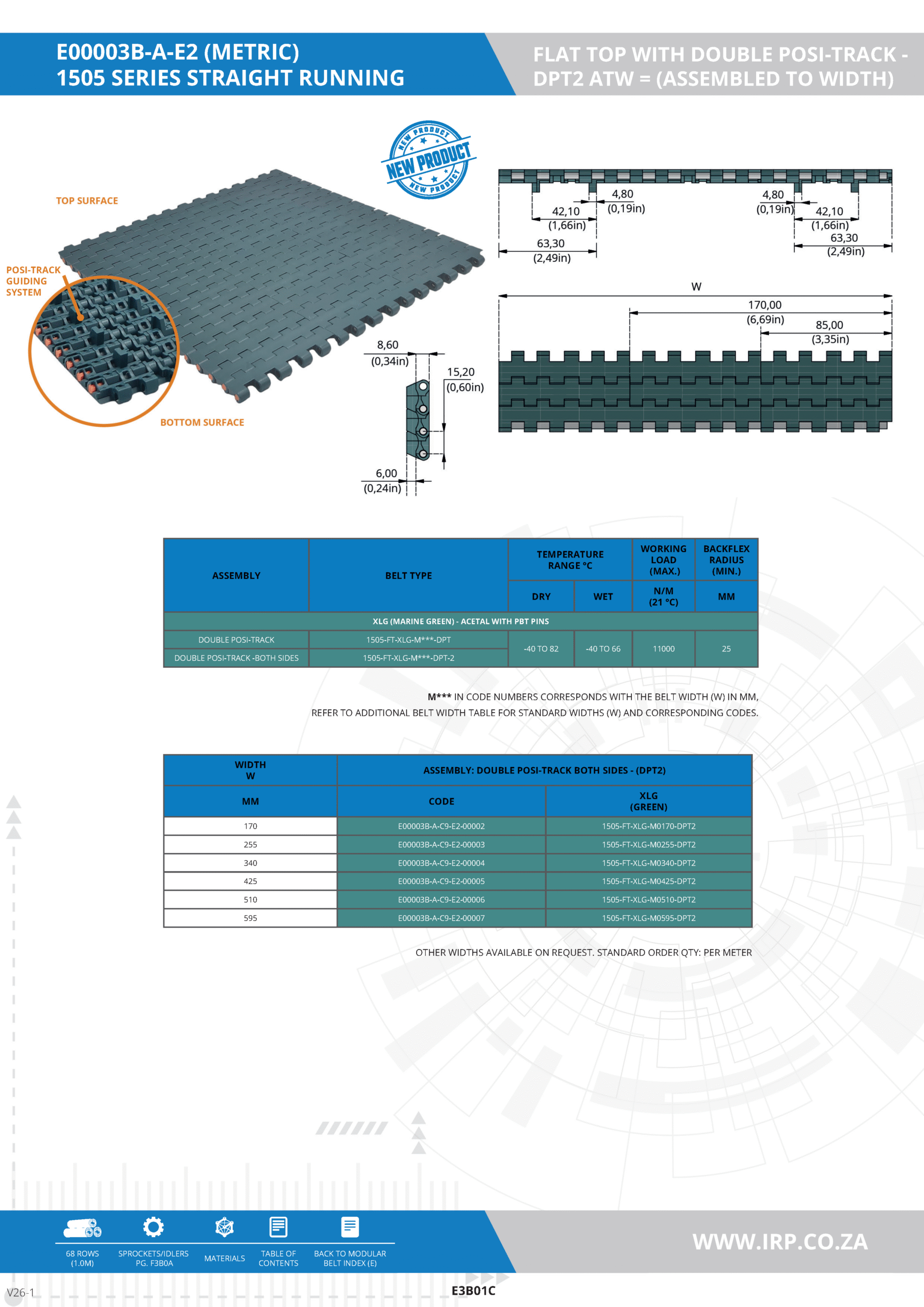 FLAT TOP WITH DOUBLE POSI-TRACK (DPT2) ASSEMBLED TO WIDTH (ATW) - (METRIC)