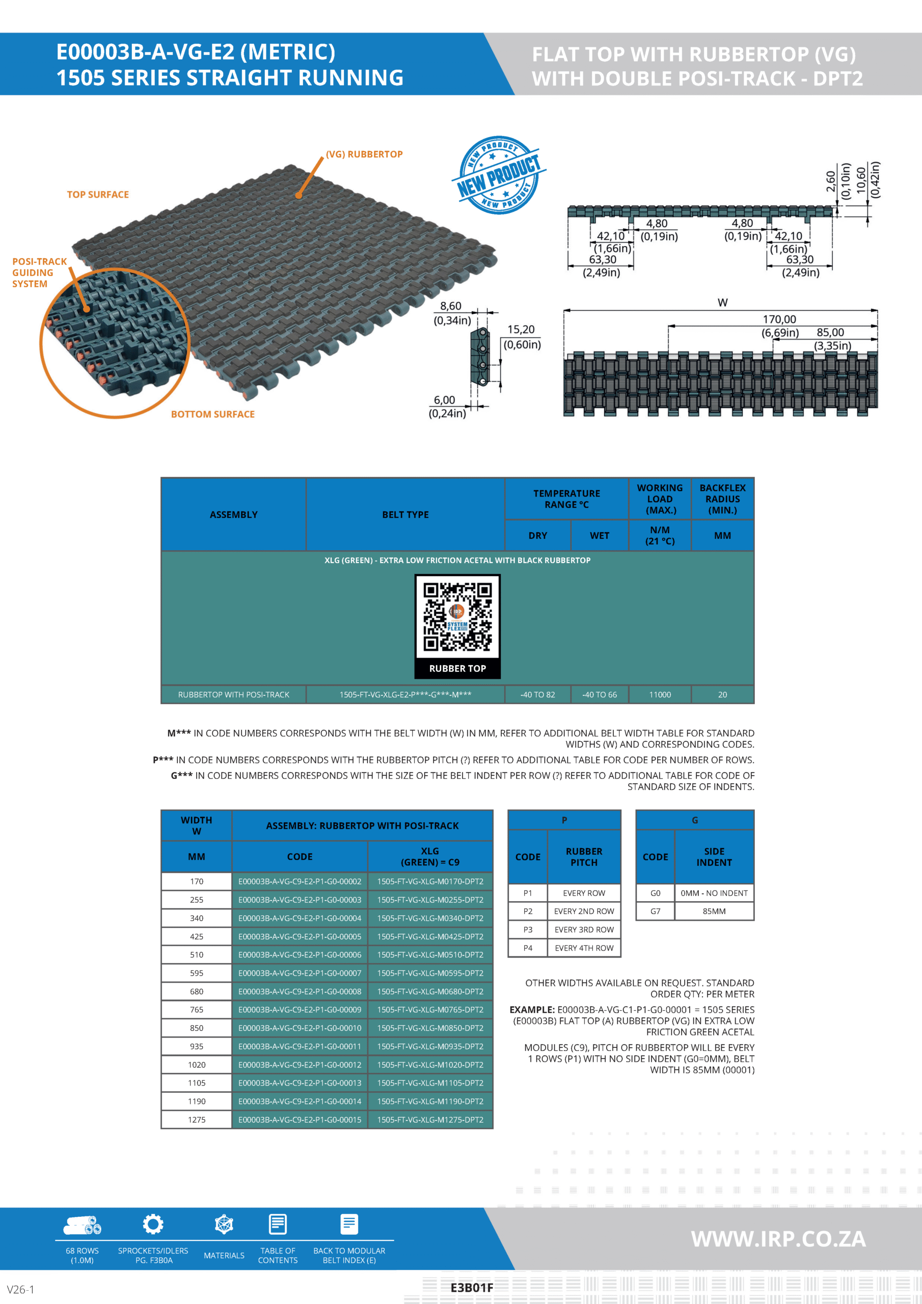 1505 SERIES STRAIGHT RUNNING – RUBBERTOP (VG) WITH DOUBLE POSI-TRACK (DPT2)-METRIC
