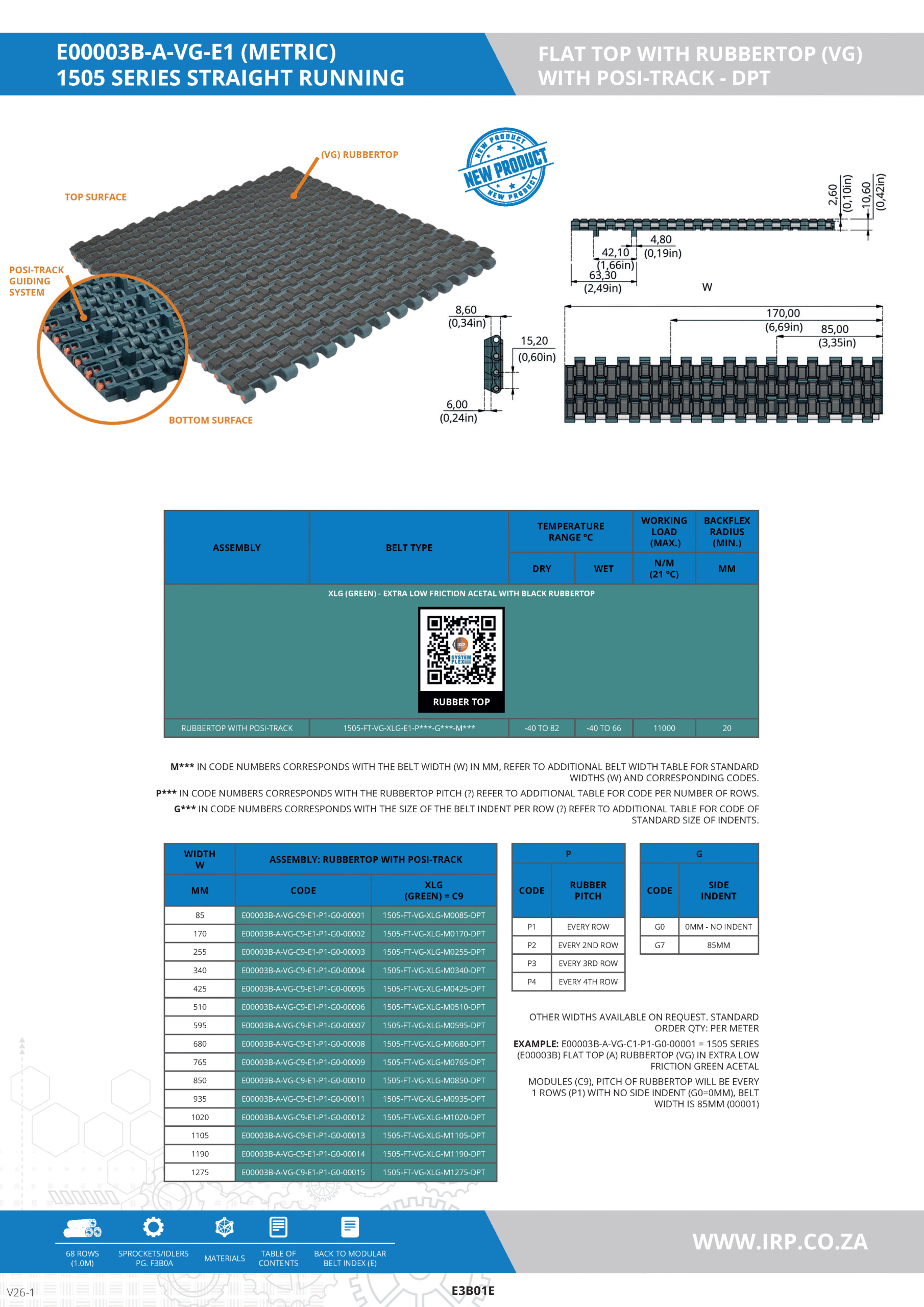 1505 SERIES STRAIGHT RUNNING – RUBBERTOP (VG) WITH POSI-TRACK (DPT)-METRIC