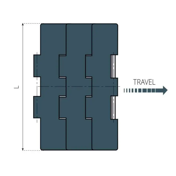 The 821 Series Flat Top Double Hinge chain is engineered for superior performance, featuring a double hinge and double reinforcing bars for increased strength and longevity. This design facilitates smoother operations and increased load-bearing capabilities in demanding industrial settings.