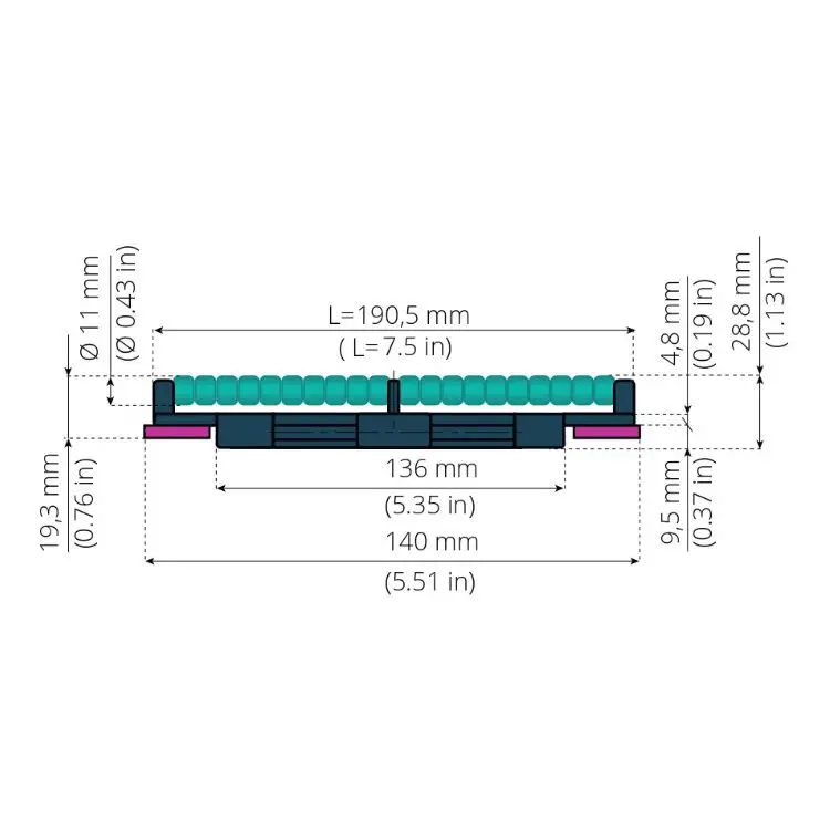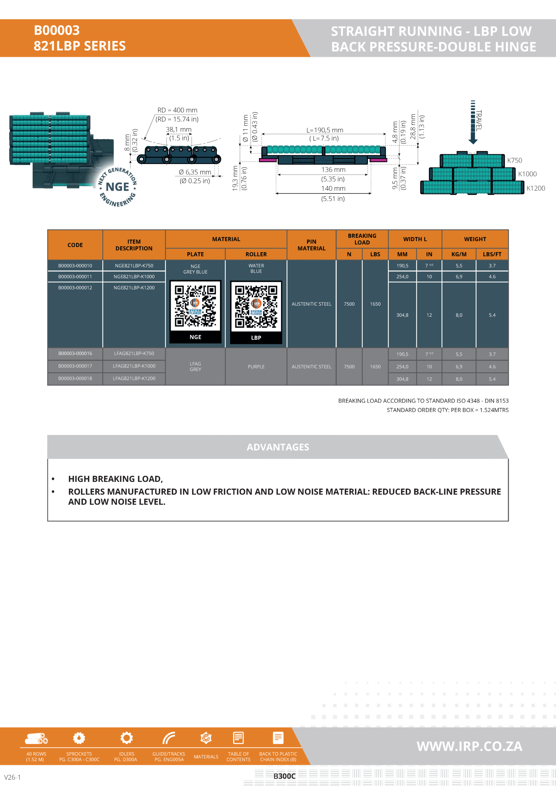 Constructed from a Next Generation Engineering Polymer (NGE) known for its low friction and high load capacity, coupled with austenitic stainless steel pins for maximum durability and chemical resistance.