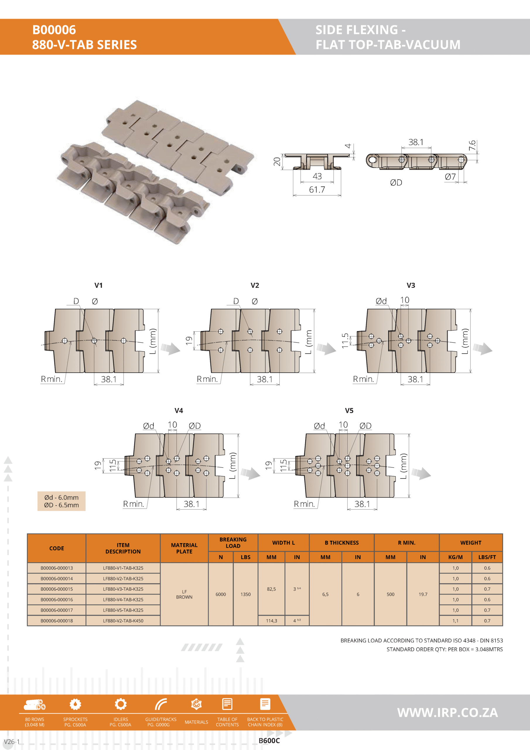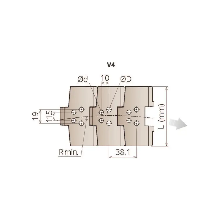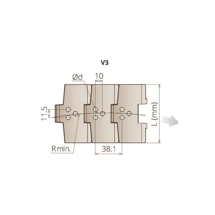The chain plates are made from LF (Light Brown) material, offering a balance of durability and low friction. This ensures longevity and reduced maintenance in high-stress conveyor environments. The material is particularly suited for applications that require smooth and precise movement.