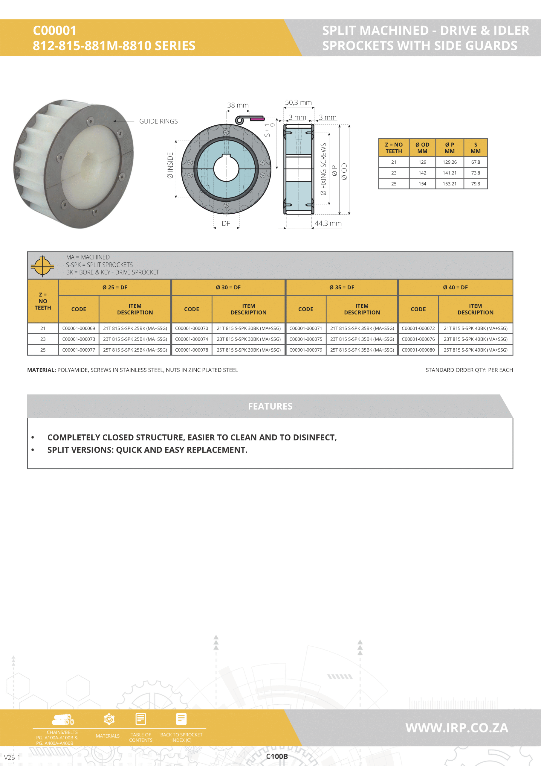 C00001 812-815-881M-8810 Series Split Machined – Drive & Idler Sprockets with Side Guards