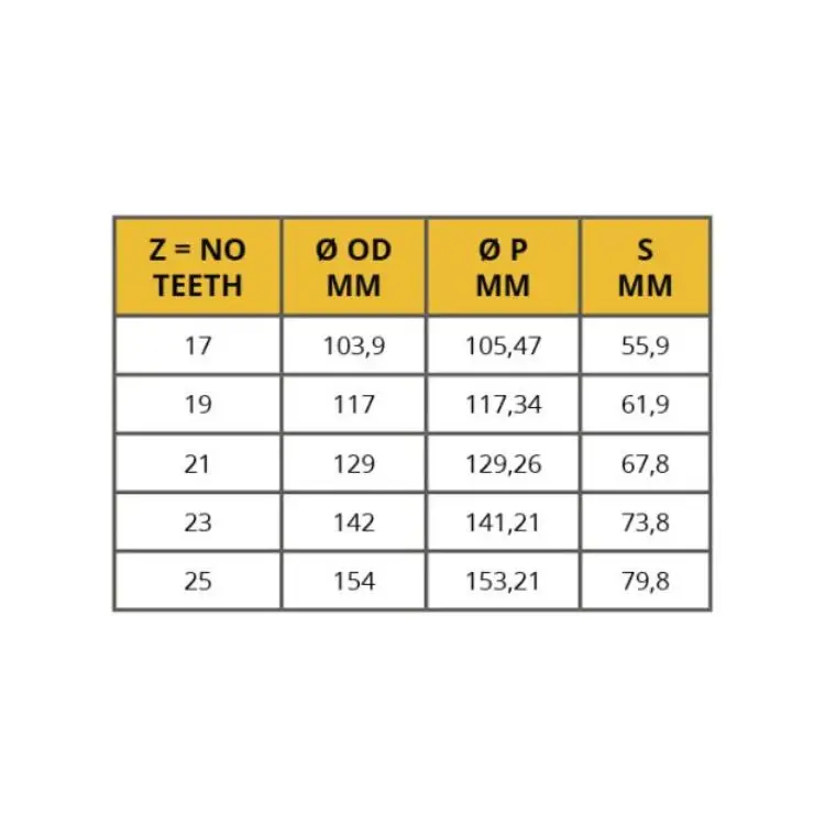 Versatile Fit: Available in various sizes and teeth numbers to meet different requirements.