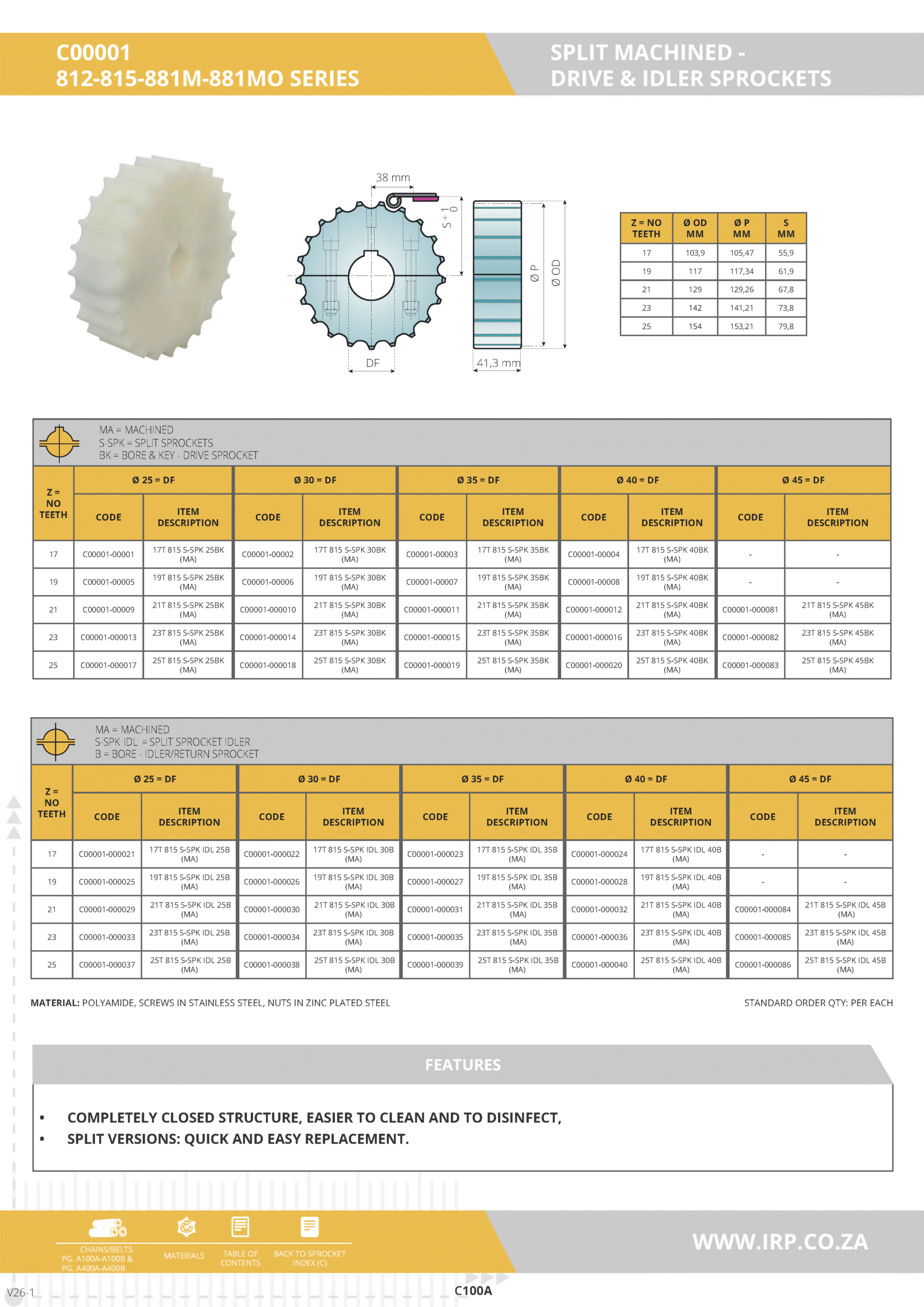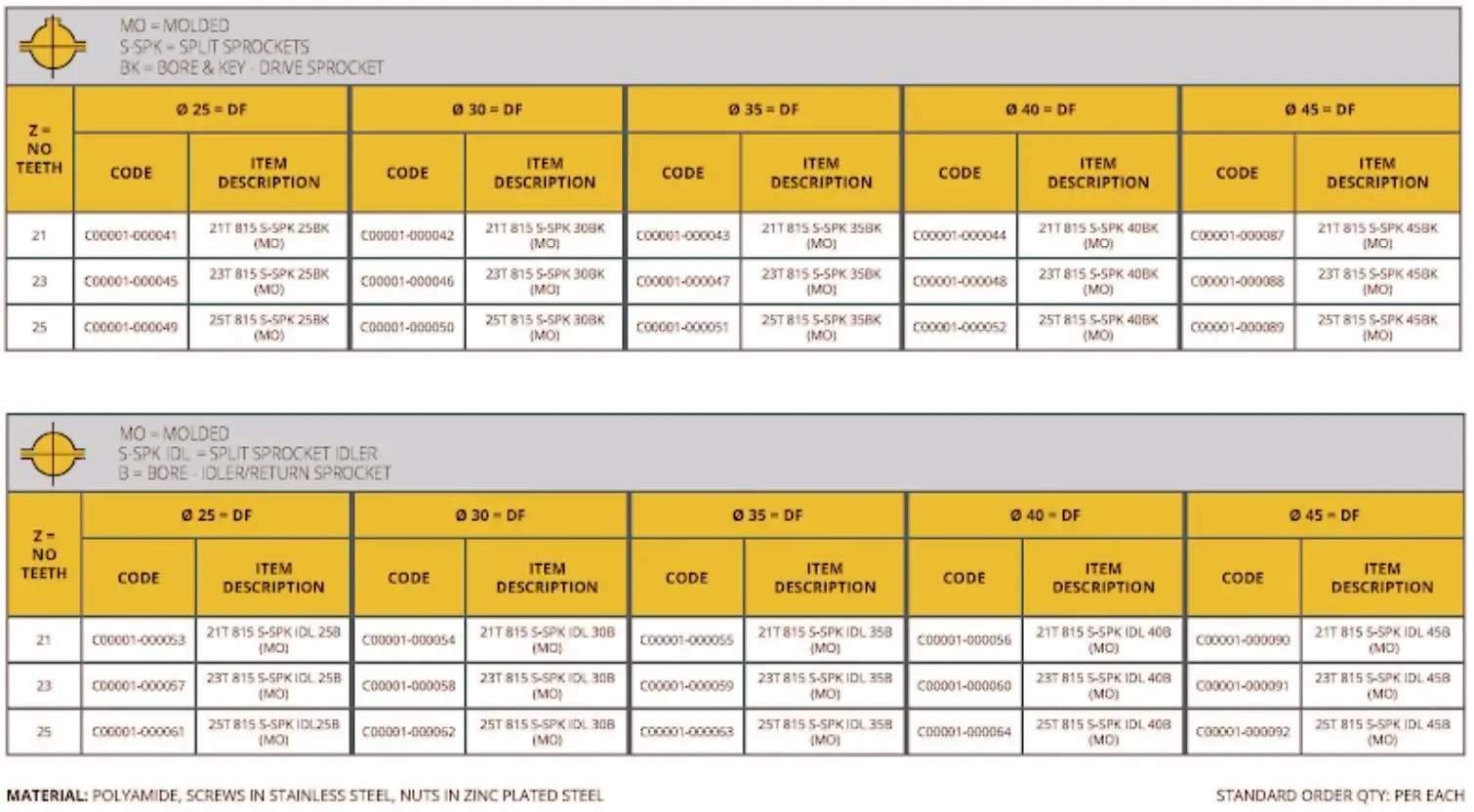 C00001 812-815-881M-881MO Series Split Machined – Drive & Idler Sprockets