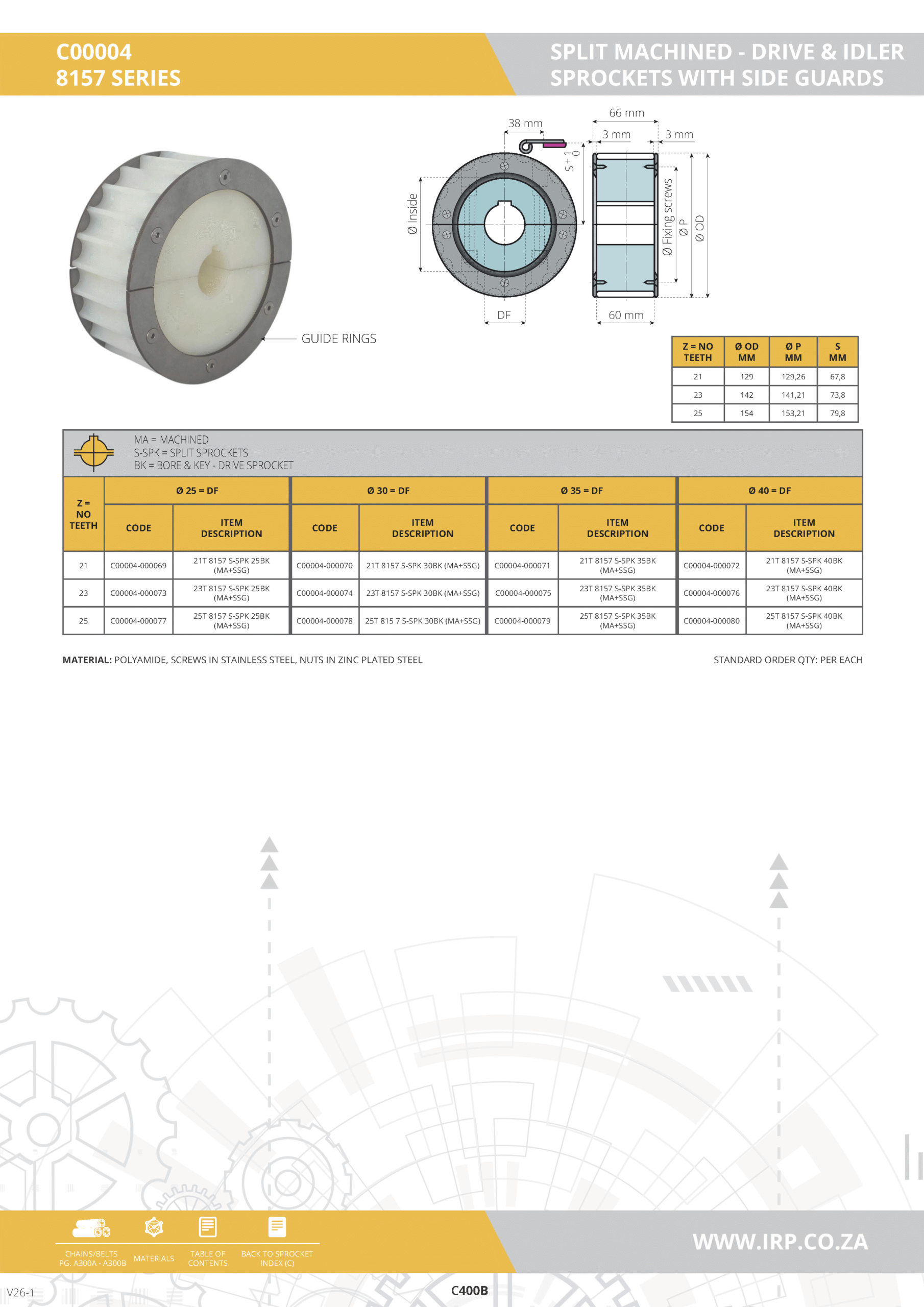 C00004 8157 Series Split Machined – Drive & Idler Sprockets with Side Guards