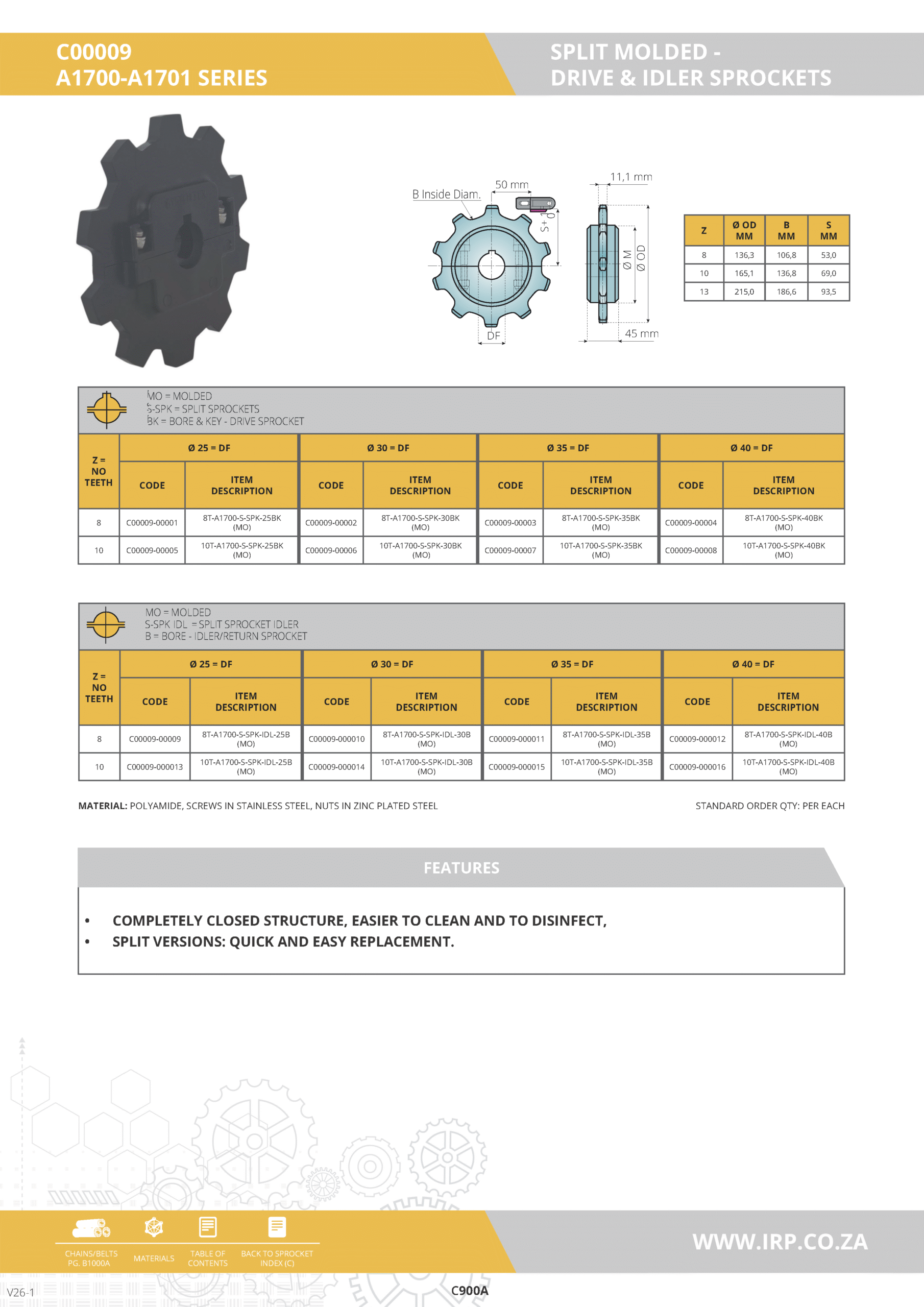 C00009 A1700-A1701 Series Split Molded – Drive & Idler Sprockets