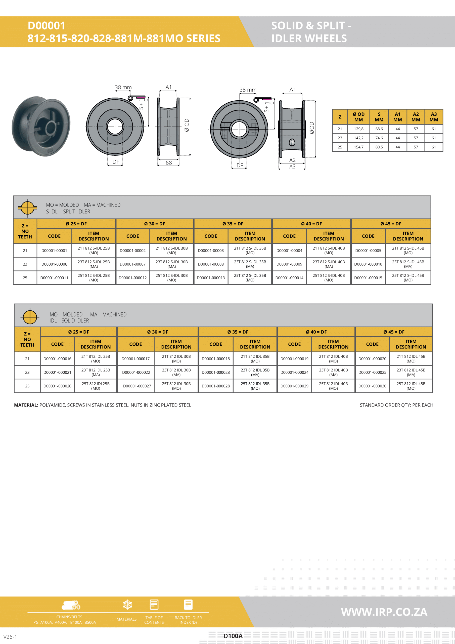 Constructed from premium polyamide, these idler wheels are built to withstand the demands of continuous operation. Stainless steel screws and zinc plated nuts ensure enhanced durability and corrosion resistance.