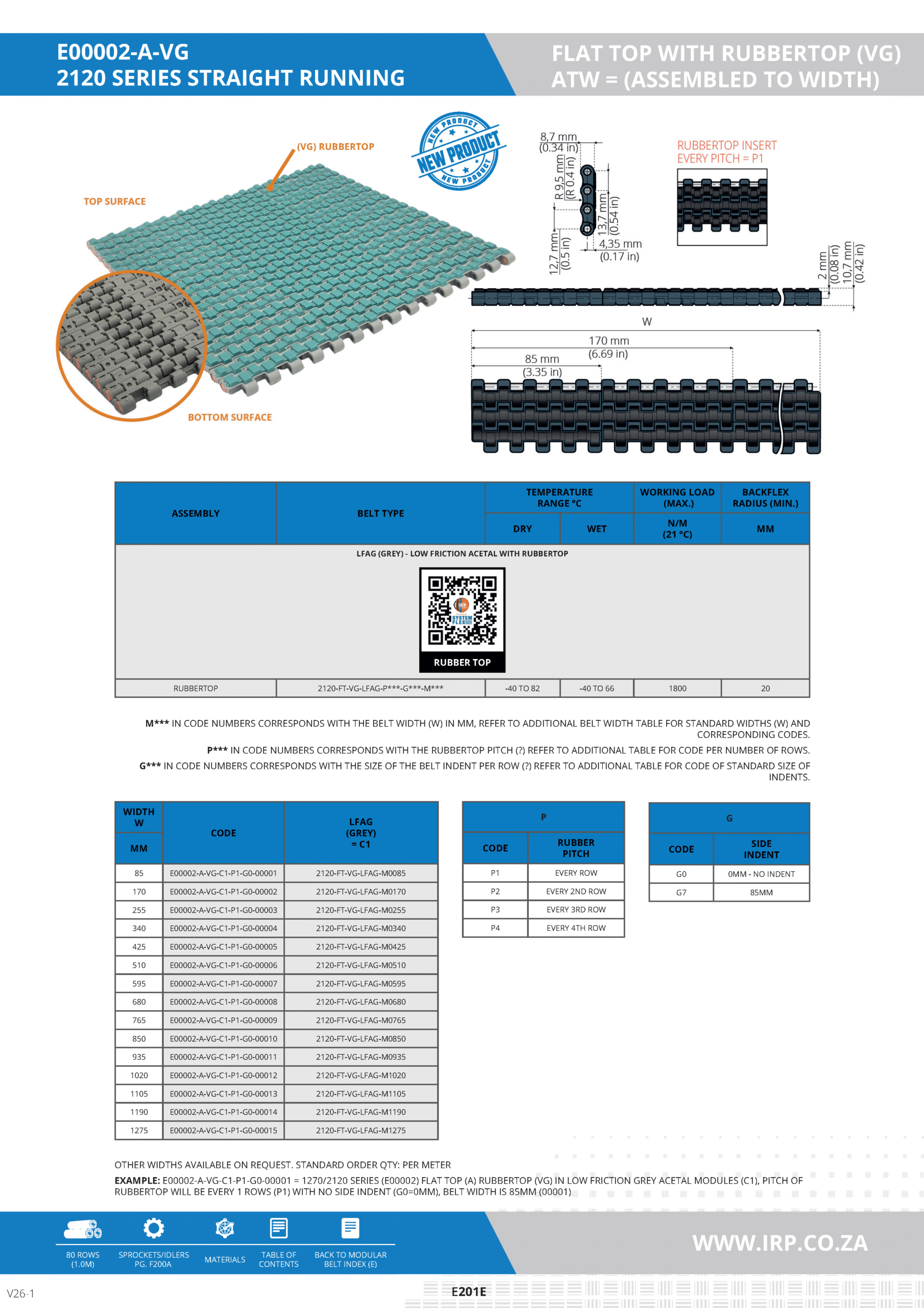 The 2120 series with RubberTop (VG) offers superior traction and durability in straight-running applications. The integrated RubberTop provides increased grip, minimizing the risk of slippage and enhancing the transport of materials across various industrial environments. This series is available in low friction grey acetal, tailored to meet specific operational demands.