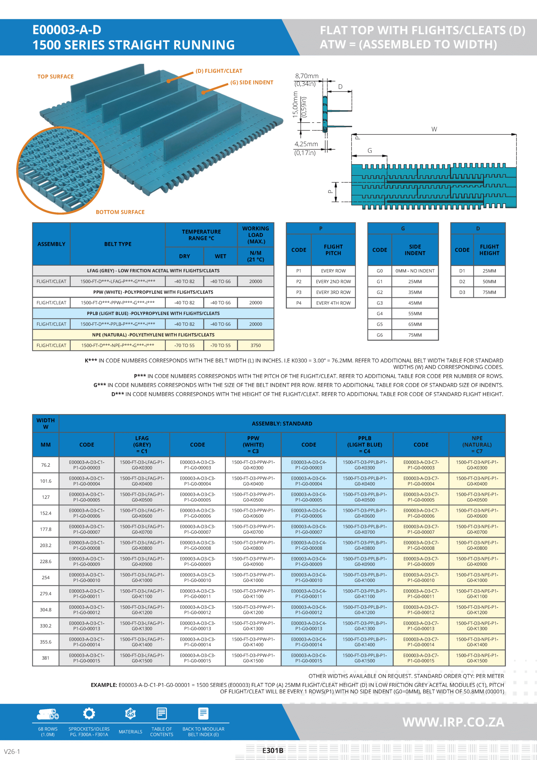 1500 Series Straight Running Flat Top with Flights/Cleats (D) – Assembled to Width (ATW)