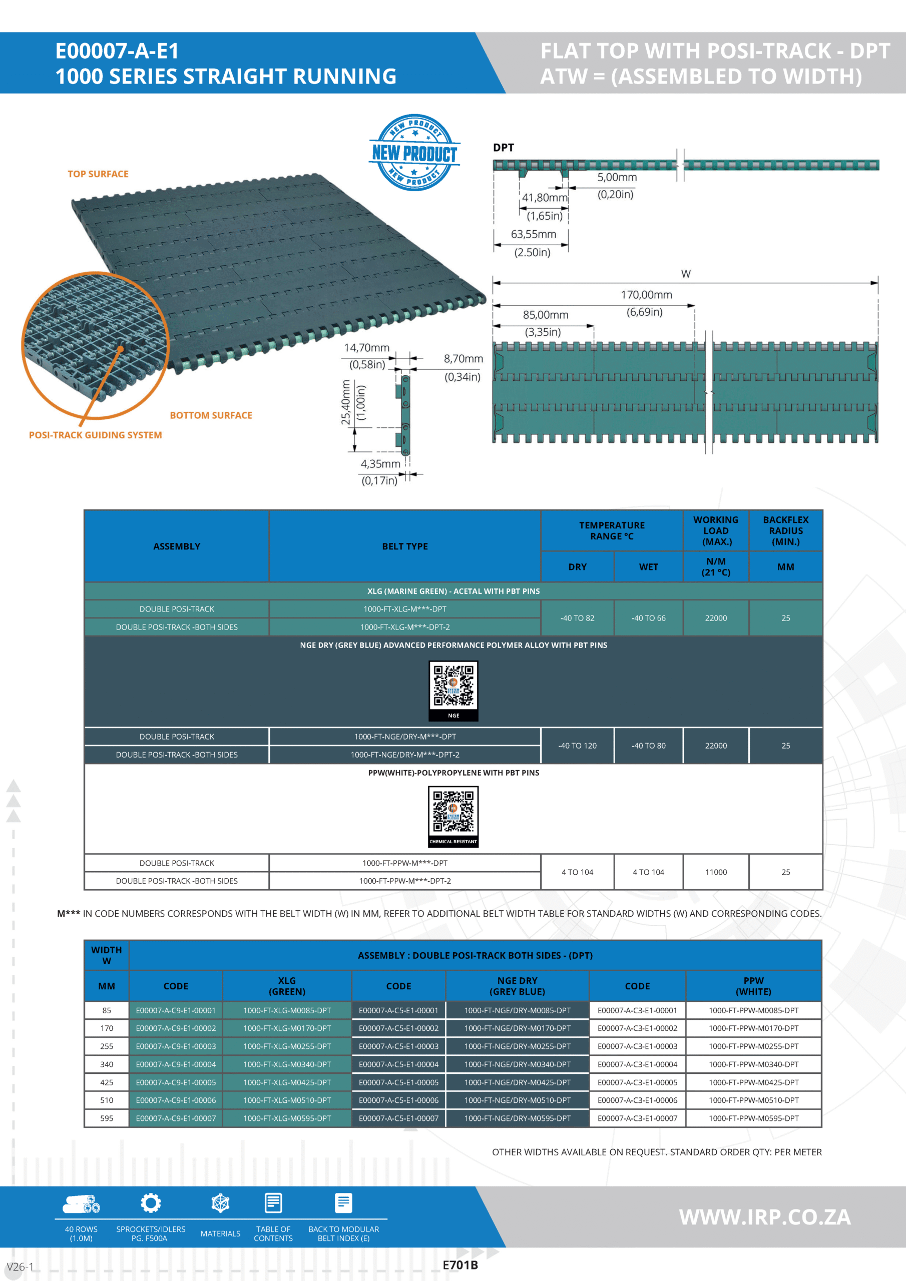 1000 Series Flat Top Straight Running with Posi-Track (DPT) Assembled to Width (ATW)