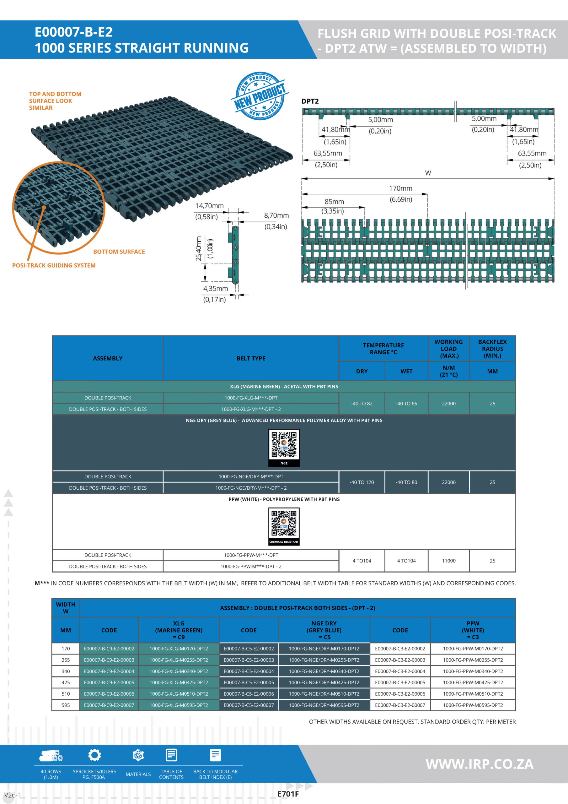 Acetal is known for its high mechanical strength and excellent wear resistance, while PBT (Polybutylene Terephthalate) pins increase durability and reduce friction. This combination ensures the belt’s long-term performance, even in challenging industrial settings.