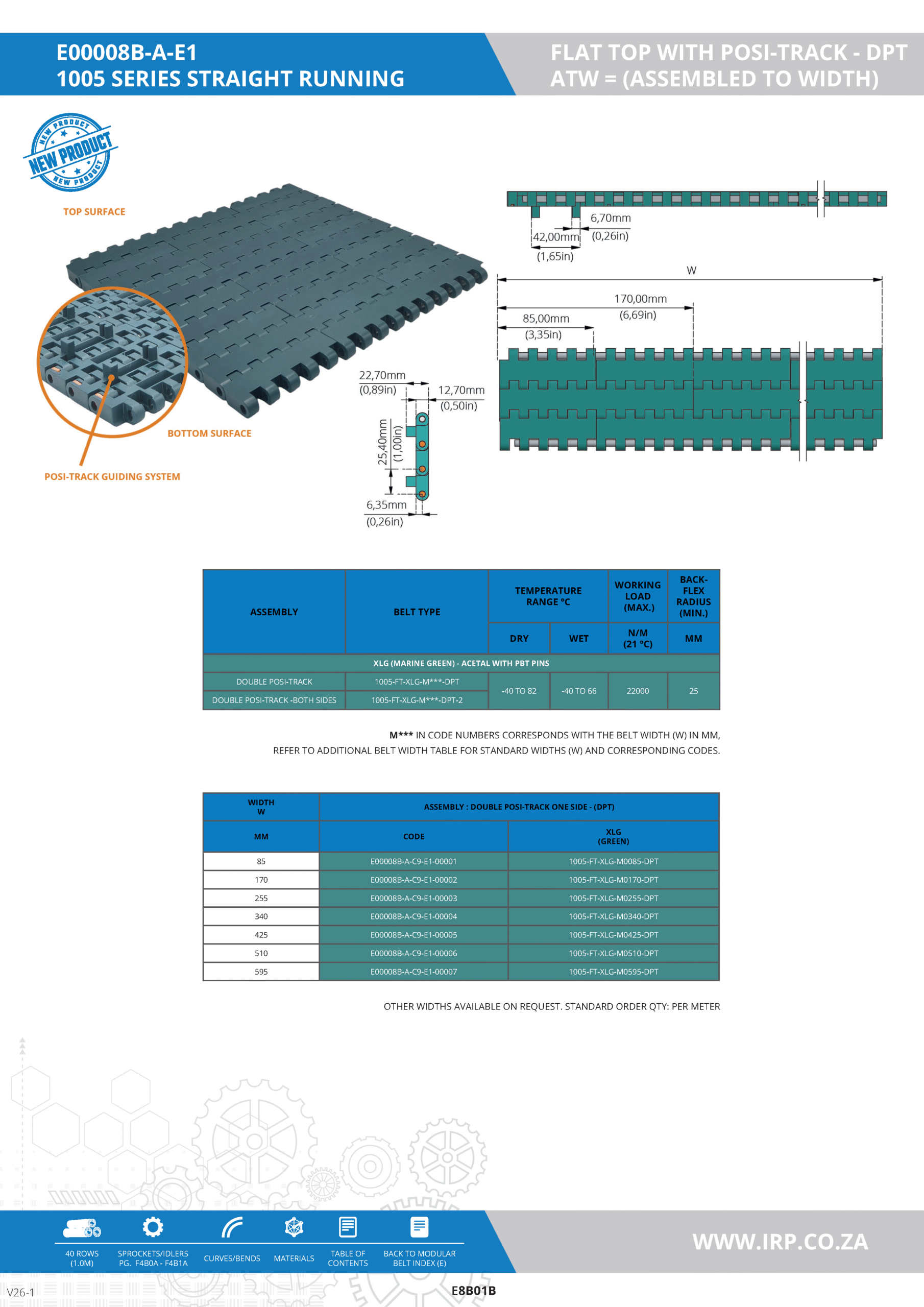 1005 SERIES-STRAIGHT RUNNING-FLAT TOP-ASSEMBLED TO WIDTH (ATW) WITH POSI-TRACK (DPT)