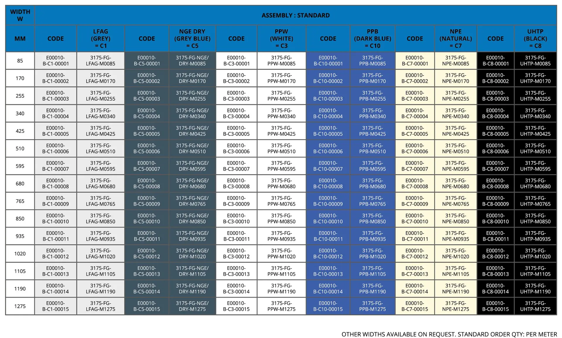 PPW (White) & PPB (Dark Blue): Resistant to a wide range of chemicals, making them ideal for environments with aggressive cleaning agents.