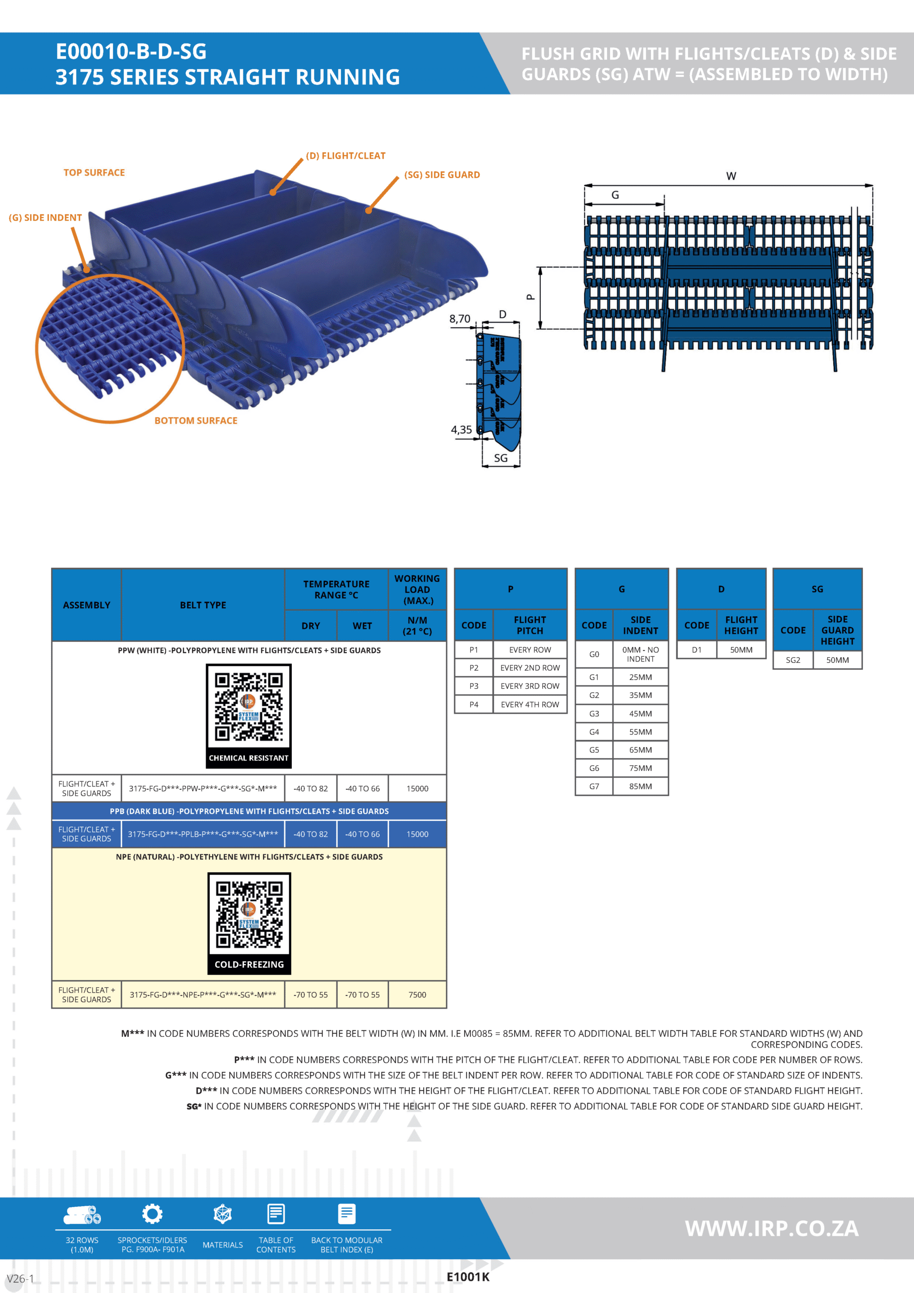 3175 SERIES STRAIGHT RUNNING-FLUSH GRID WITH FLIGHTS/CLEATS (D) & SIDE GUARDS (SG)