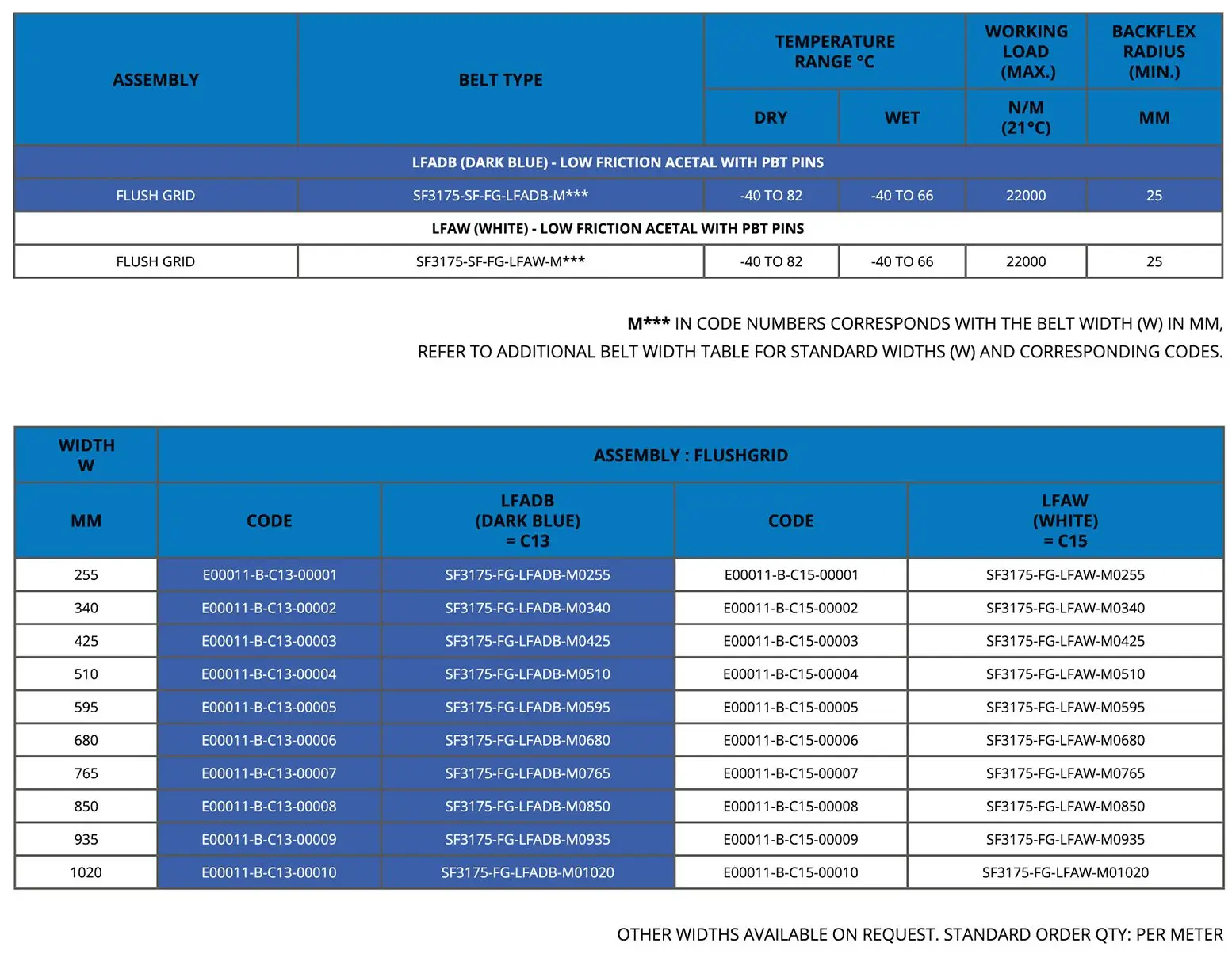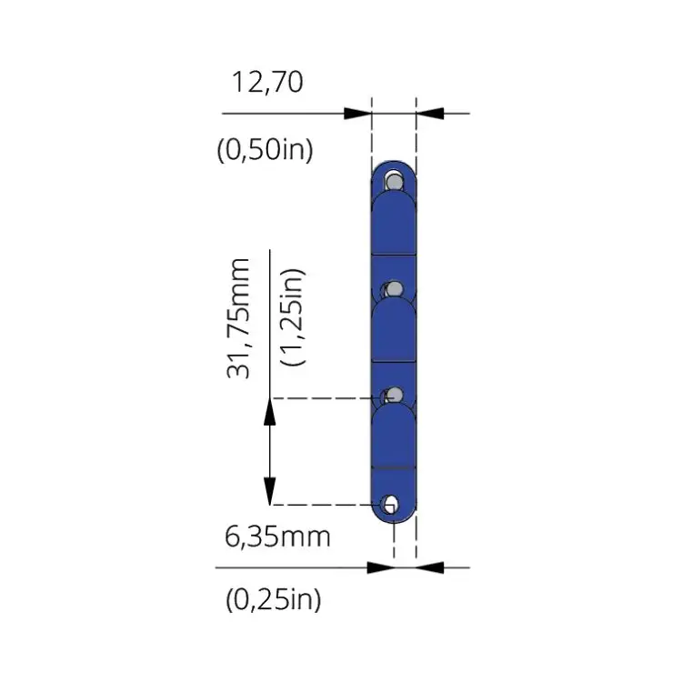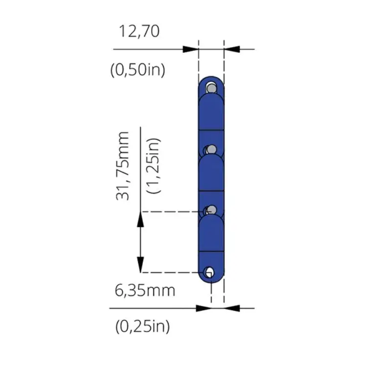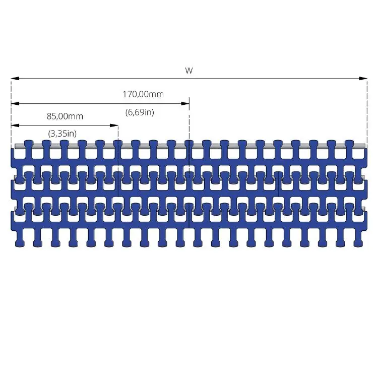 Low Friction Acetal provides excellent wear resistance, low friction, and high dimensional stability, making it ideal for conveyor applications. The PBT pins add extra durability and temperature resistance, ensuring the belt can perform reliably in demanding environments.