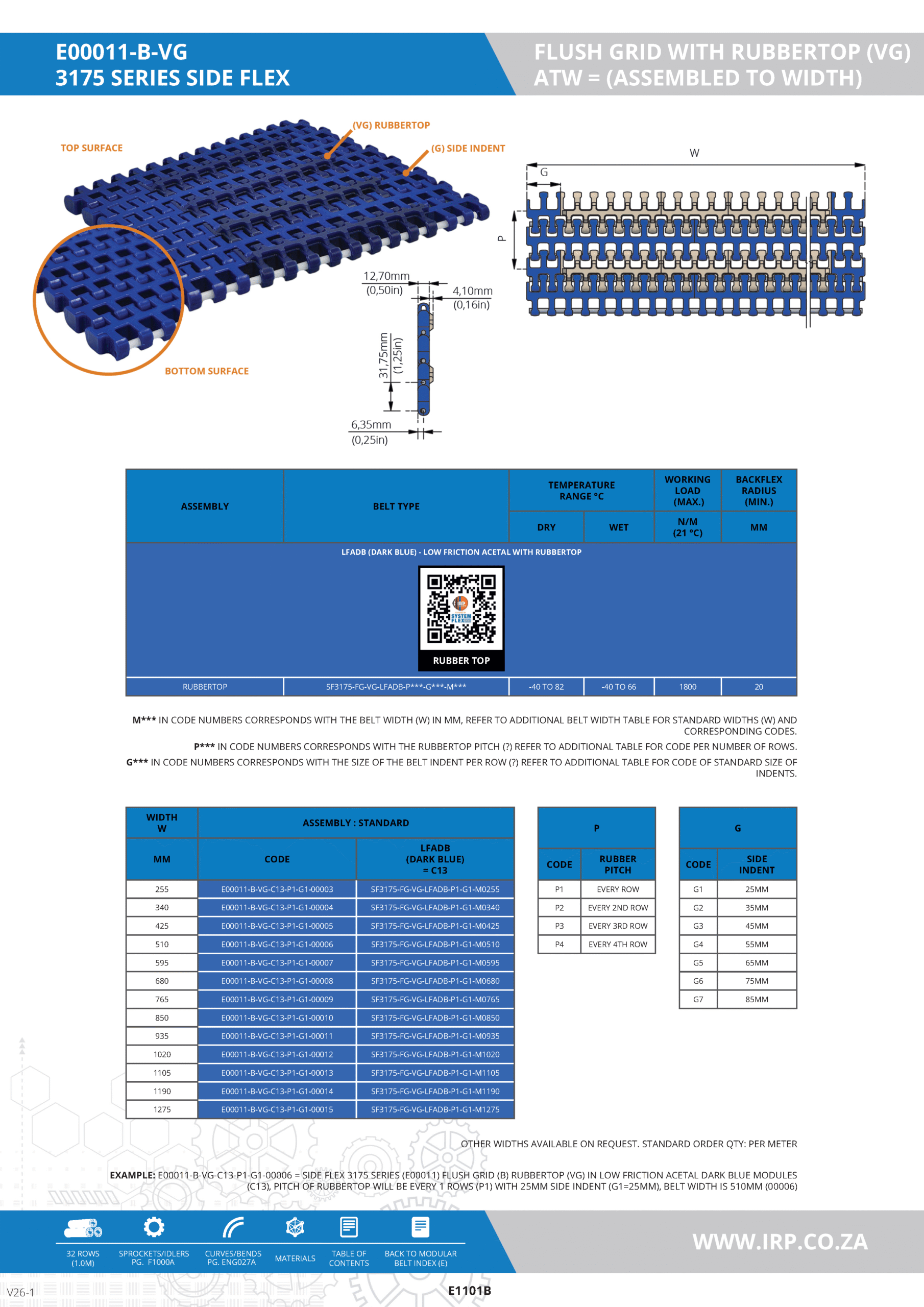 Low Friction Acetal provides excellent wear resistance and low friction properties, ensuring smooth operation and long service life. The RubberTop surface is designed to offer enhanced grip, making it ideal for applications where product stability and control are crucial.