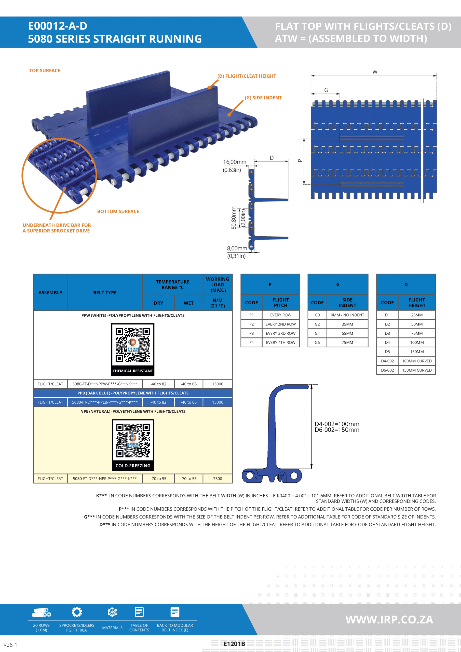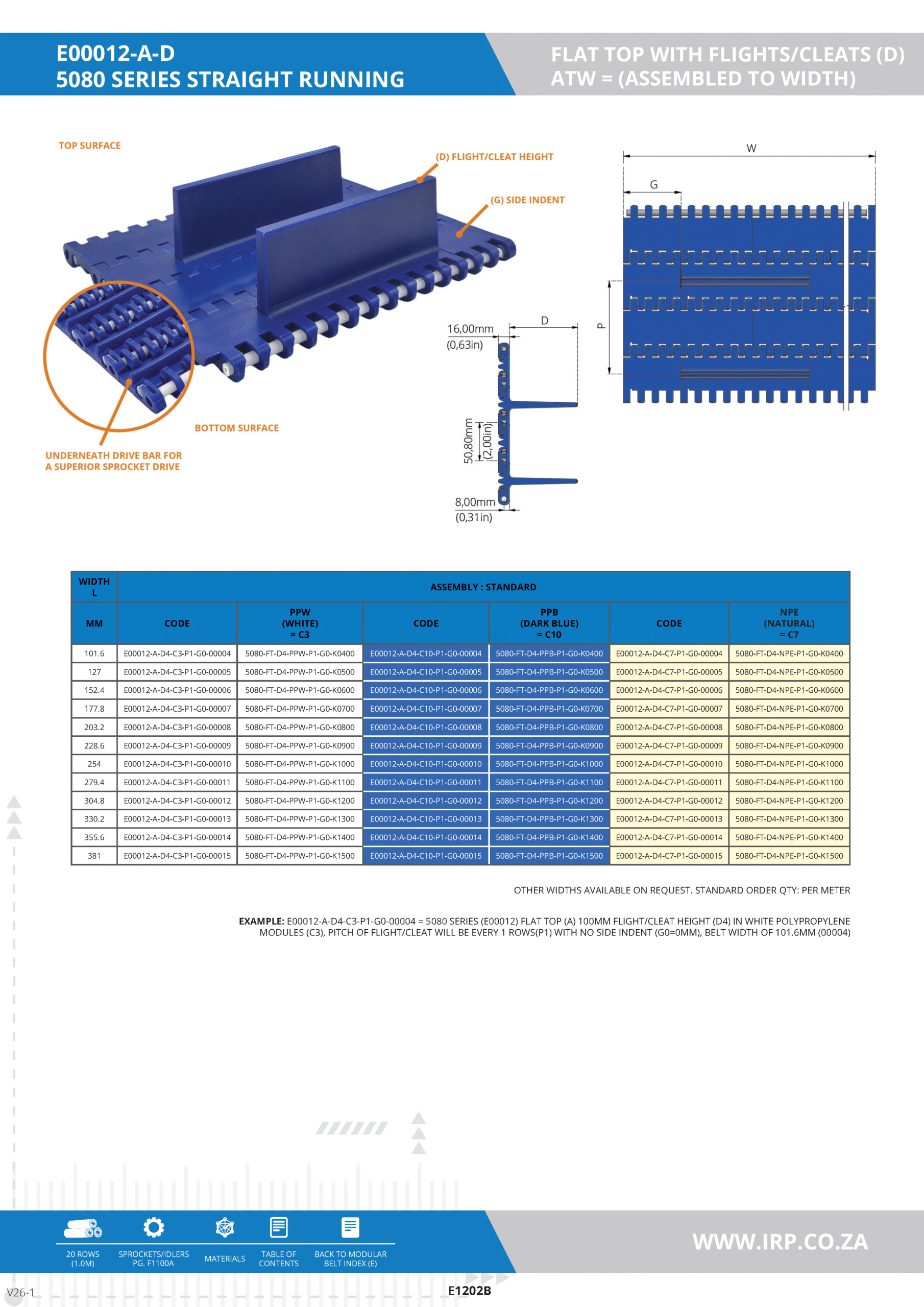 5080 SERIES STRAIGHT RUNNING – FLAT TOP (FT) WITH FLIGHTS/CLEATS (D) – ASSEMBLED TO WIDTH (ATW)
