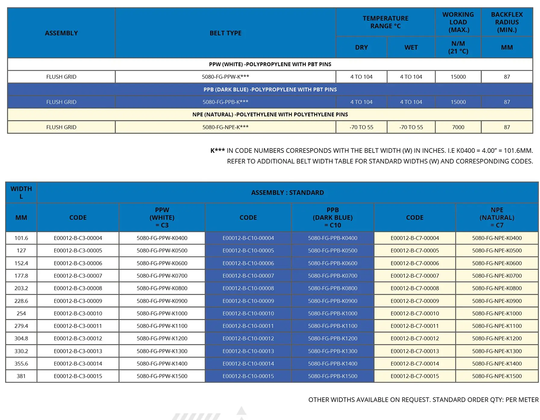 Polypropylene is known for its excellent chemical resistance, high impact strength, and wide operating temperature range, making it suitable for heavy-duty conveyor applications. Polyethylene offers good impact resistance and performs well at low temperatures, making it ideal for cold environments.