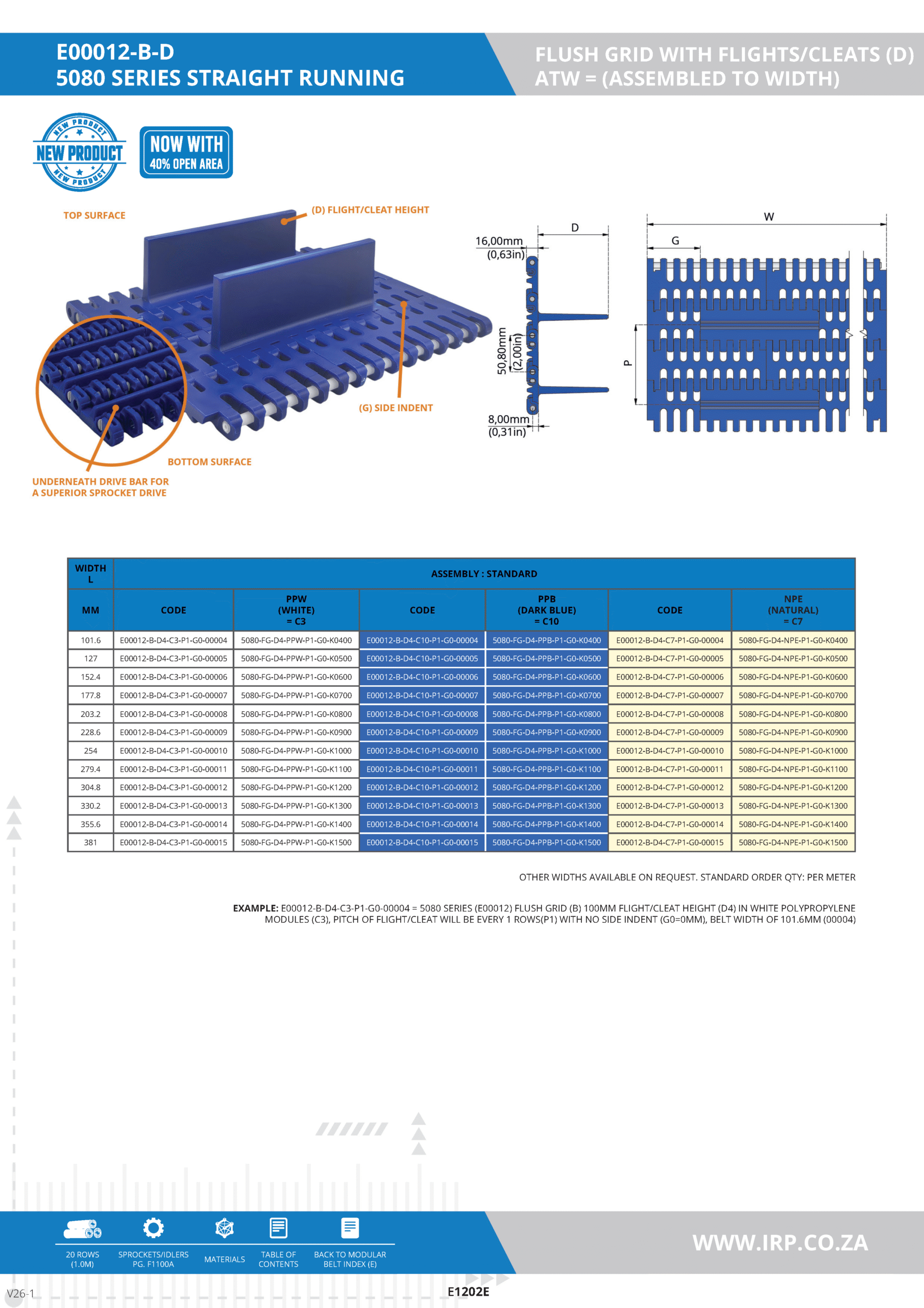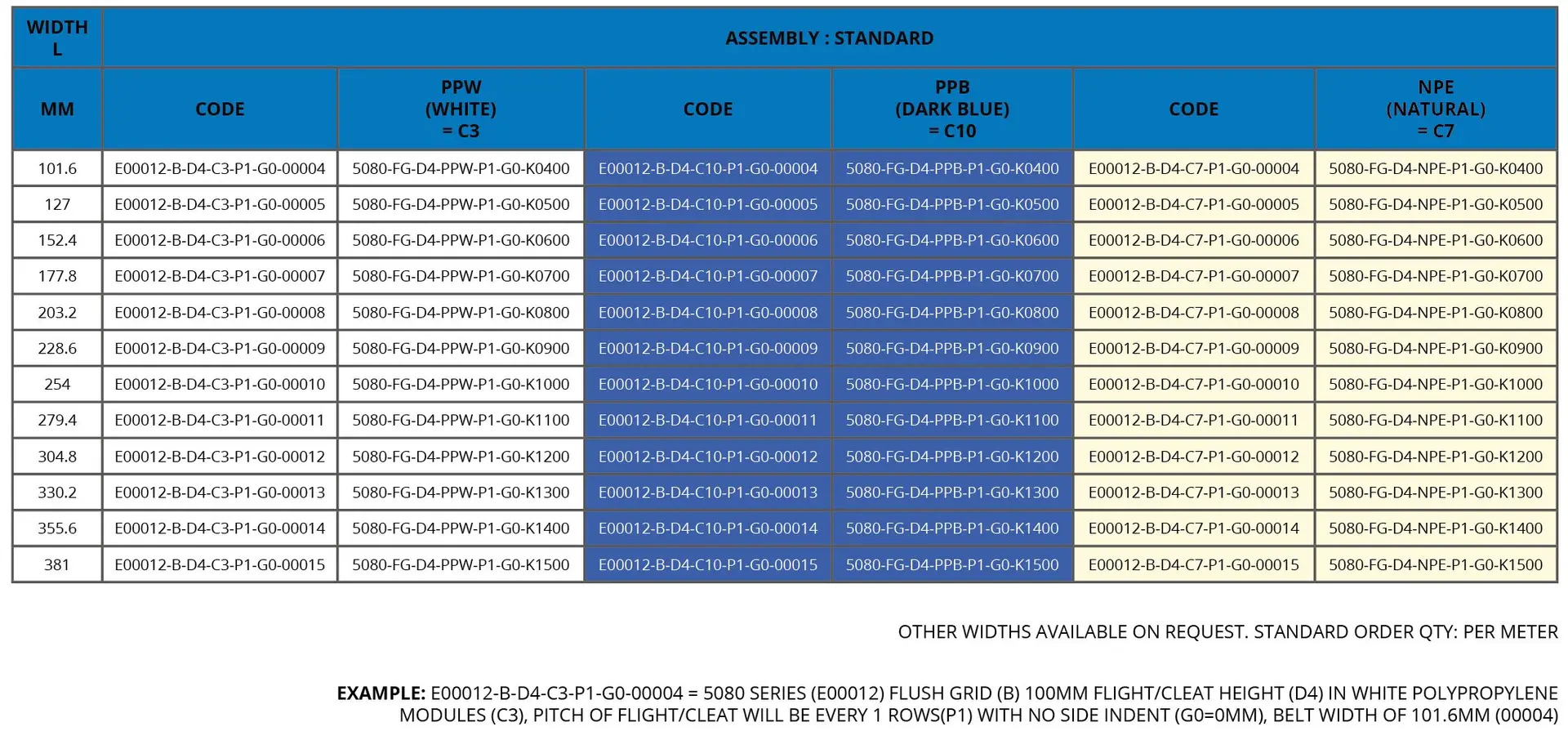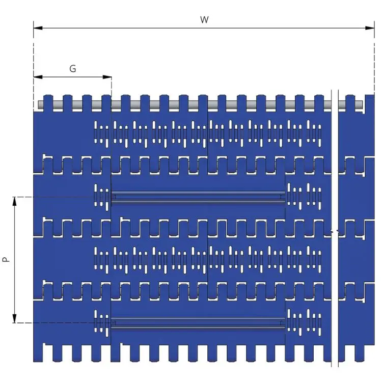 Polypropylene provides high impact strength, chemical resistance, and a broad temperature range, making it suitable for demanding conveyor applications. Polyethylene offers good impact resistance and performs well in low-temperature environments. The PBT pins add strength and durability, ensuring long-term performance.