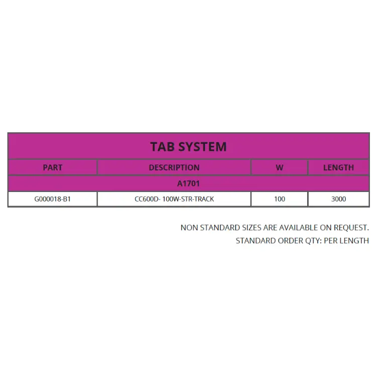 TAB Corner Tracks, Curves, Bends, and Straight Sections are designed as an economical alternative to magnetic curves, specifically for conveyor systems where cleaning and product support are not primary requirements. These components are ideal for a wide range of industries, offering a stable and efficient means of product transport. The TAB design ensures a secure chain hold, maintaining product stability through the curves and bends of conveyor lines.
