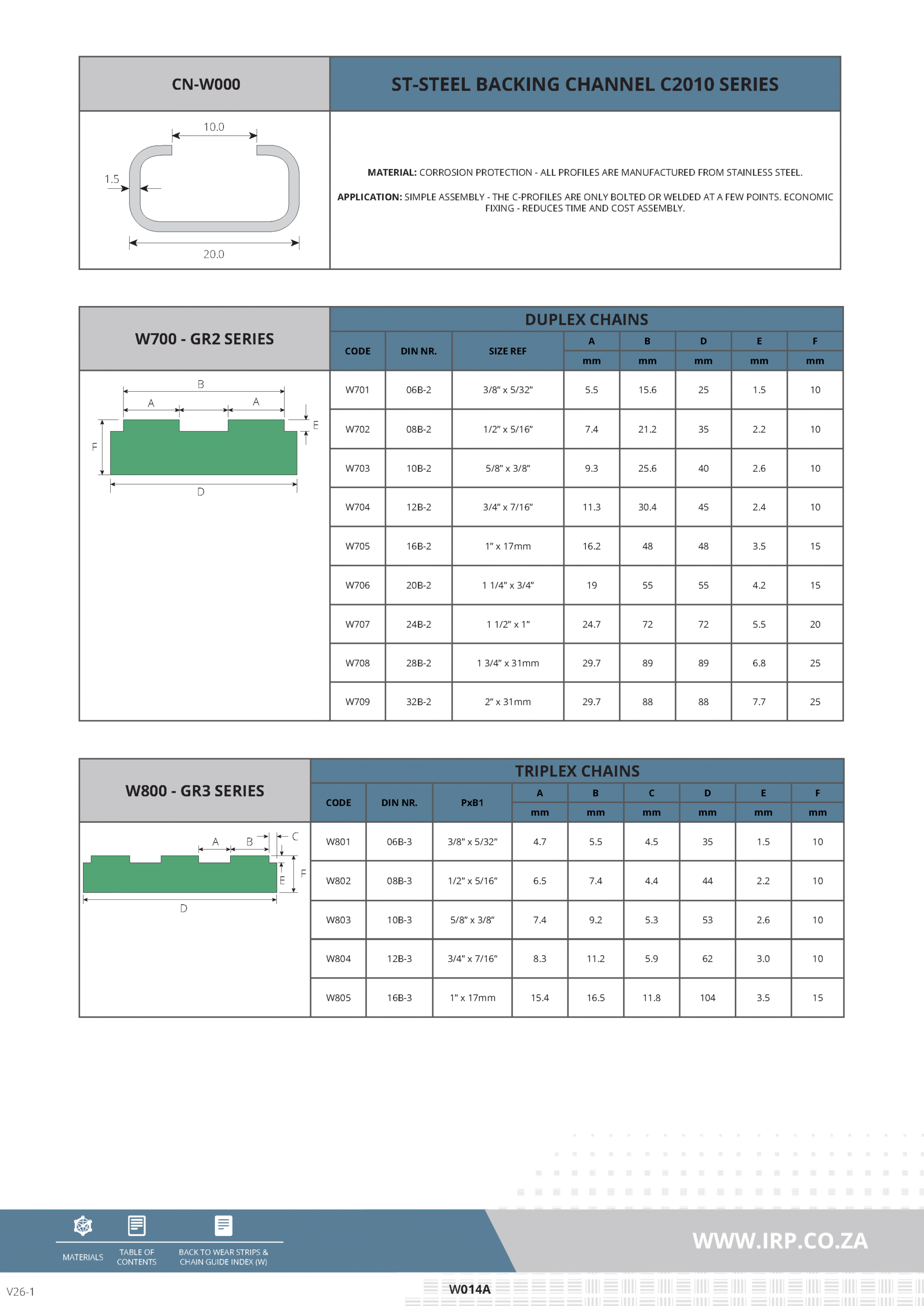 Constructed from high-strength steel, the W800-GR2 Series Triplex Chains provide superior durability and resistance to wear. This material is specifically chosen to withstand the rigors of heavy-duty industrial applications, ensuring that the chains maintain optimal performance over time.